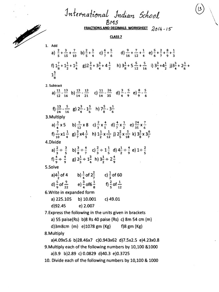 Math worksheets for grade 7 fractions and decimals. › worksheets › grade_7Free Math Worksheets for Grade 7 - Homeschool Math This is a comprehensive collection of free printable math worksheets for grade 7 and for pre-algebra, organized by topics such as expressions, integers, one-step equations, rational numbers, multi-step equations, inequalities, speed, time & distance, graphing, slope, ratios, proportions, percent, geometry, and pi. › worksheetsMath Worksheets 16 Fraction Decimal Percent Worksheets . These fraction decimal percent worksheets teach 4th and 5th grade students how to convert between different forms for the same fraction quantity, including both reducing fractions to lower forms as well as changing fractions to less reduced forms. › mathMath Worksheets | Free and Printable Aligned with the CCSS, the practice worksheets cover all the key math topics like number sense, measurement, statistics, geometry, pre-algebra and algebra. Packed here are workbooks for grades k-8, teaching resources and high school worksheets with accurate answer keys and free sample printables. › Grade1 › worksheets1st Grade Math Worksheets Pdf, Maths Worksheet for Class 1 Under geometry and with our shapes worksheets for grade 1 collection, children will learn varied math shapes like squares, triangle, pentagon, octagon, circle, oval etc. Under this section, we also have a 3d shapes worksheets for grade 1 in which students learn the equivalence of 2d shapes in 3d. Most of the objects we see in real life are in ...